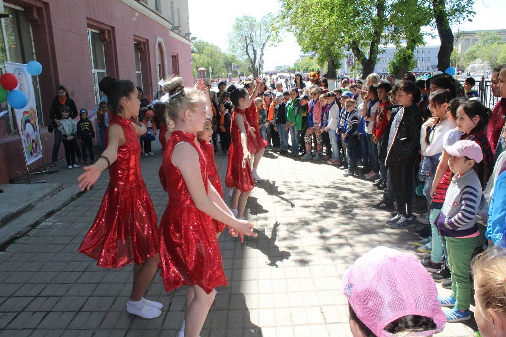 The dance group Inspiration congratulated the participants on the Day of Children’s Protection with the performance of the dance numbers «Rock Roll» and «Let’s Walk Away School», and the vocalists of the Impuls choreographic collective R. Islamgaziev and K. Jetpisbaeva sang «I would like to draw a dream» the author of the text D. Garipov and «Our Favorite Cat», the author A. Petryashev.