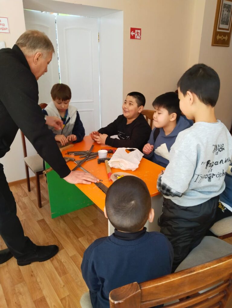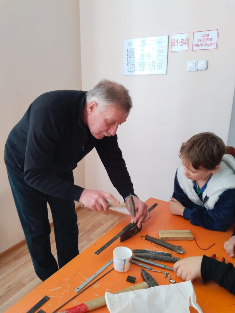 «Шеге мен балға» үйірмесінің сабағында балалар металдармен және оларды бекіту құралдары: болт, тойтарма, шеге, бұранда түрлерімен танысты. Үйреніп, өздері тәжірибе жасап көрді, еңбекке деген қызығушылықтарын арттырды.