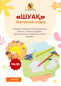 Студия детского творчества «ШУАҚ» работает на базе КГУ «Карагандинская областная детская библиотека имени Абая» и приглашает детей от 4 до 8 лет в увлекательный мир чтения и творчества.